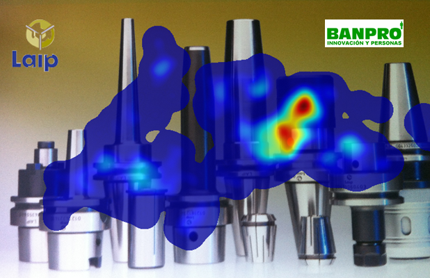 Tras analizar la mirada de varios profesionales industriales al ver la imagen utilizando un Eye Tracking, algo parece llamar especialmente su atención. En el heatmap o mapa de calor de la imagen que el Eye Tracker proporciona, se observa que la mirada de los clientes se concentra en un portaherramientas concreto.