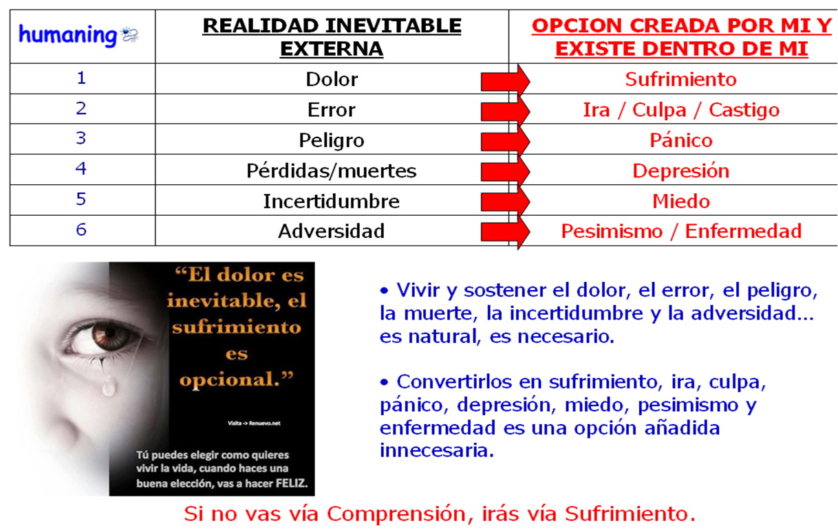 En nuestra vida personal y profesional, el dolor es inevitable. Como inevitables serán los errores, peligros, pérdidas de seres queridos, incertidumbres y adversidades de todo tipo durante nuestra aventura vital. Cumplen una función necesaria de duelo, aceptación, aprendizaje…