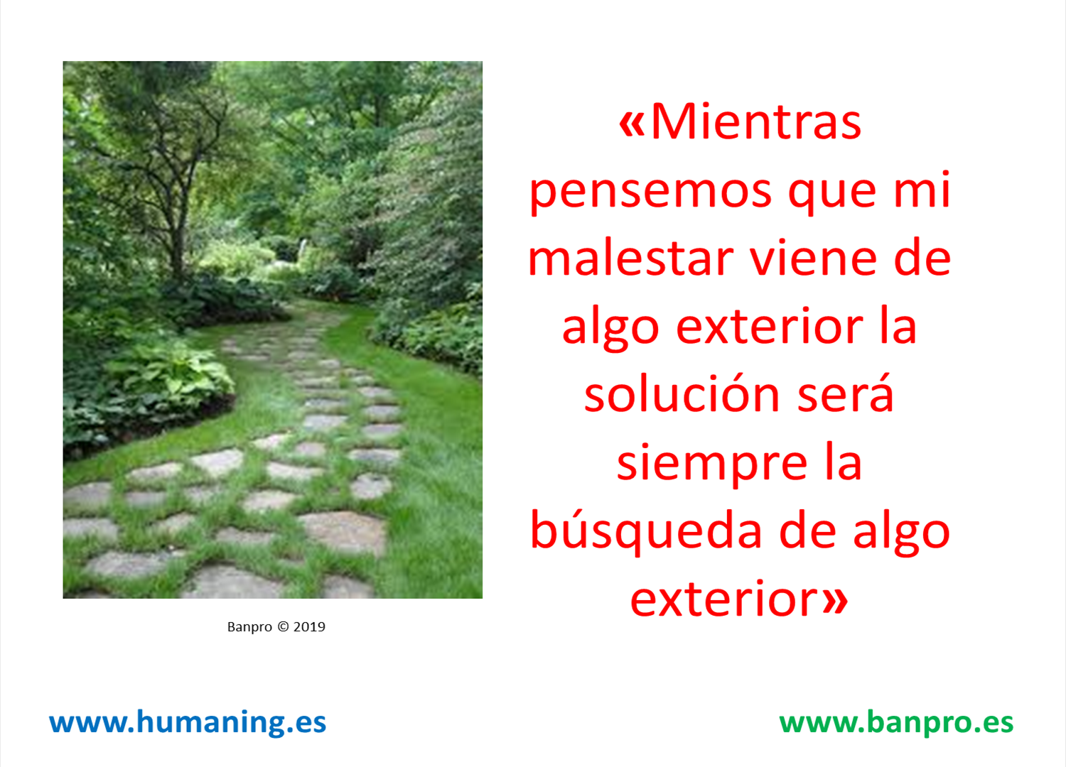 Mientras pensemos que mi malestar viene de algo exterior la solución será siempre la búsqueda de algo exterior.