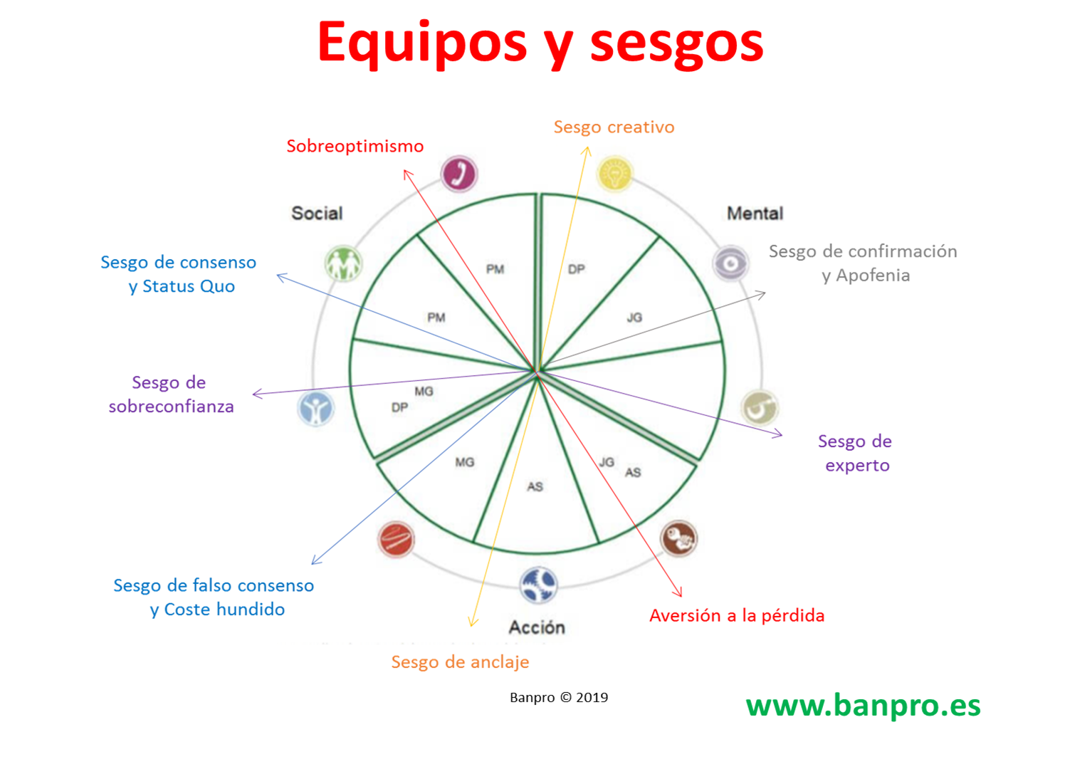Hay sesgos atencionales, sesgos de percepción y pensamiento, sesgos emocionales, de memoria y sociales, sesgos de creencias y predicciones, sesgos de decisión y conducta. Hemos encontrado indicios de que algunos sesgos están mas presentes en unos roles que en otros.
